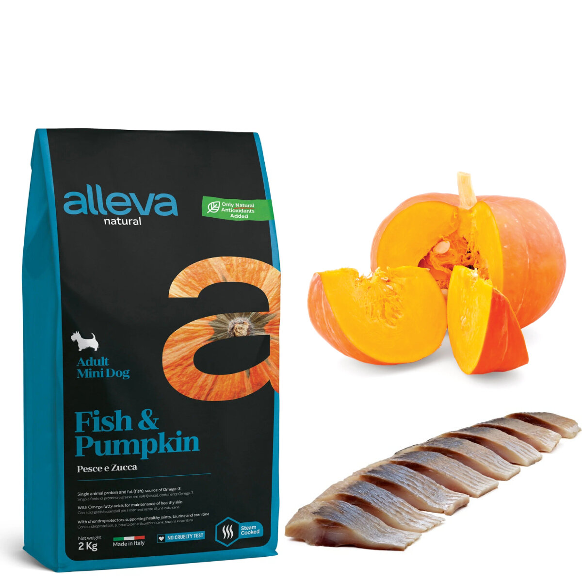Купить ALLEVA NATURAL Корм для взрослых собак с рыбой и тыквой. Мини 2 кг