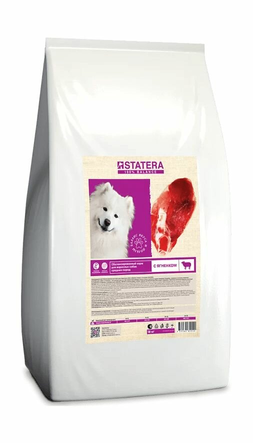 Статера / Корм для собак сухой STATERA с ягненком для средних пород 18 кг