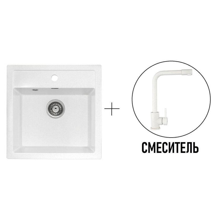 Комплект мойка для кухни Gerhans A11-18 Белая со смесителем W4998-3-18