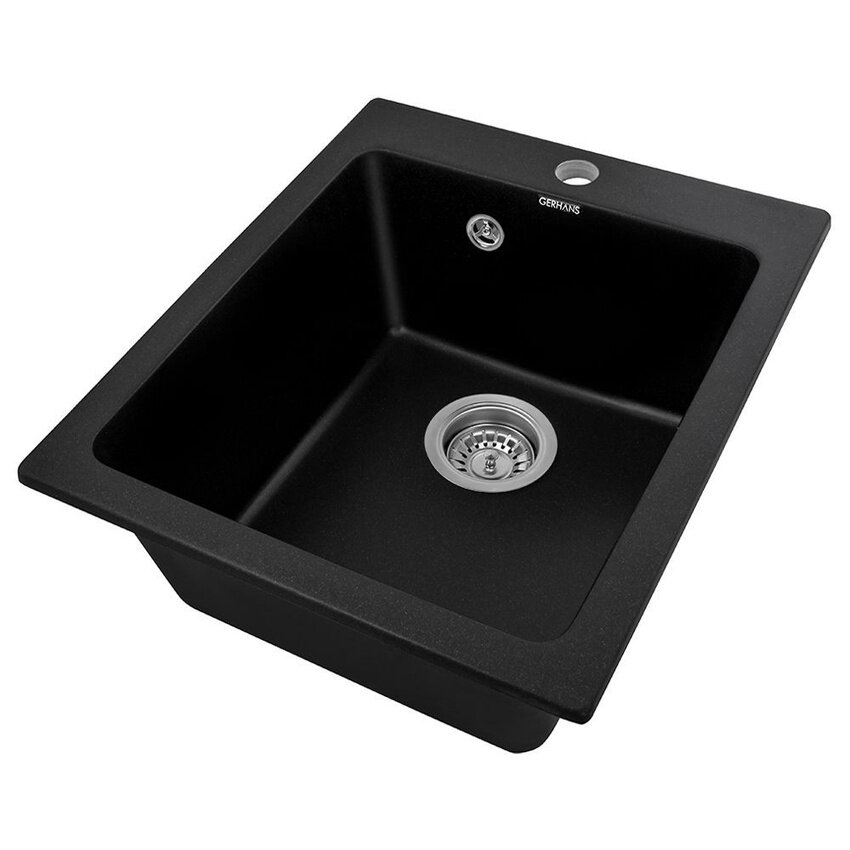 Кухонная врезная мойка из искусственного камня Gerhans А-10, черный цвет, 48 х 41 см