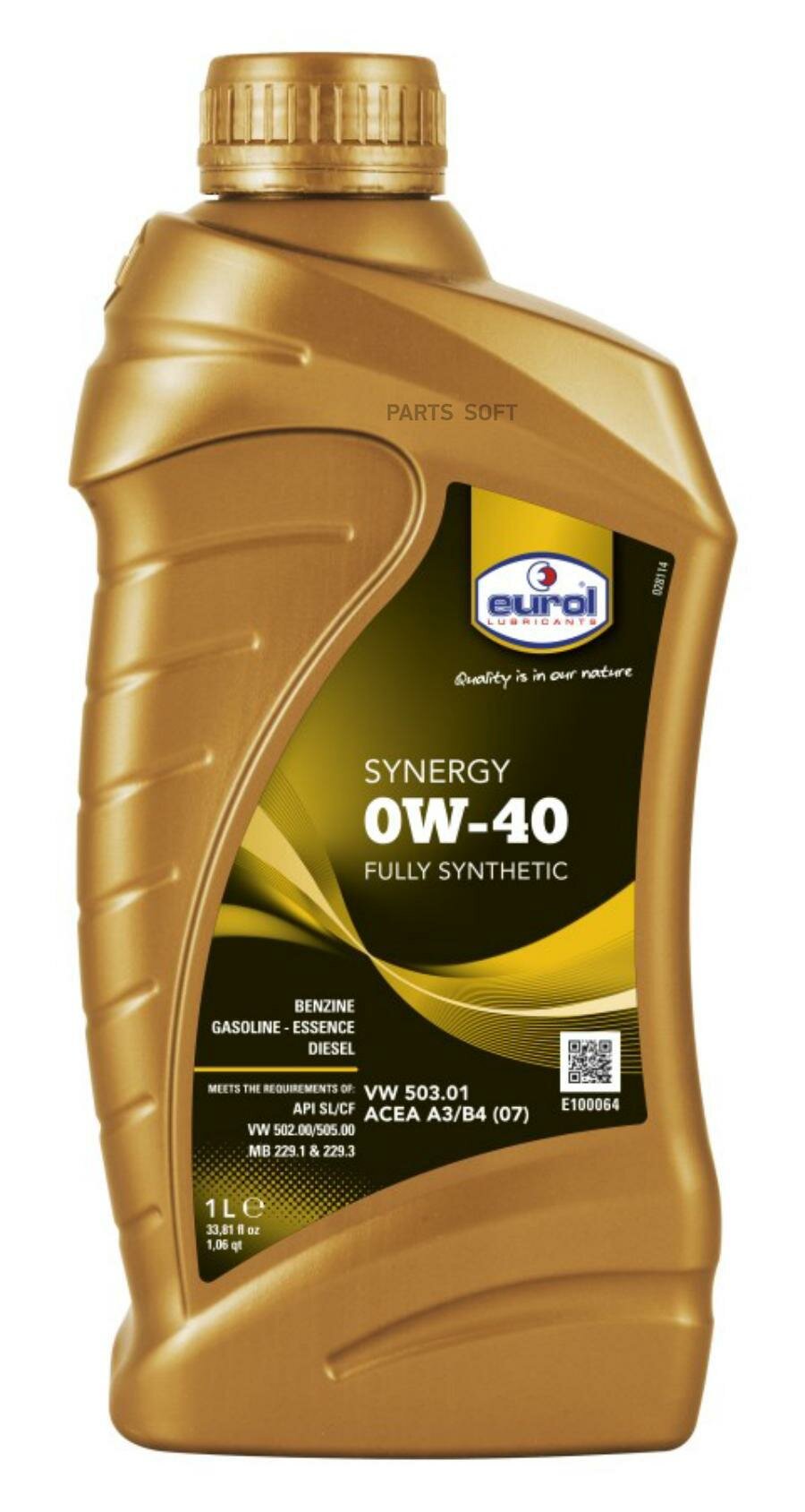 Купить Масло моторное Eurol Synergy 0W-40 SN/CF 1л (син от официального дистрибьютора, производитель - EUROL, артикул E1000641L