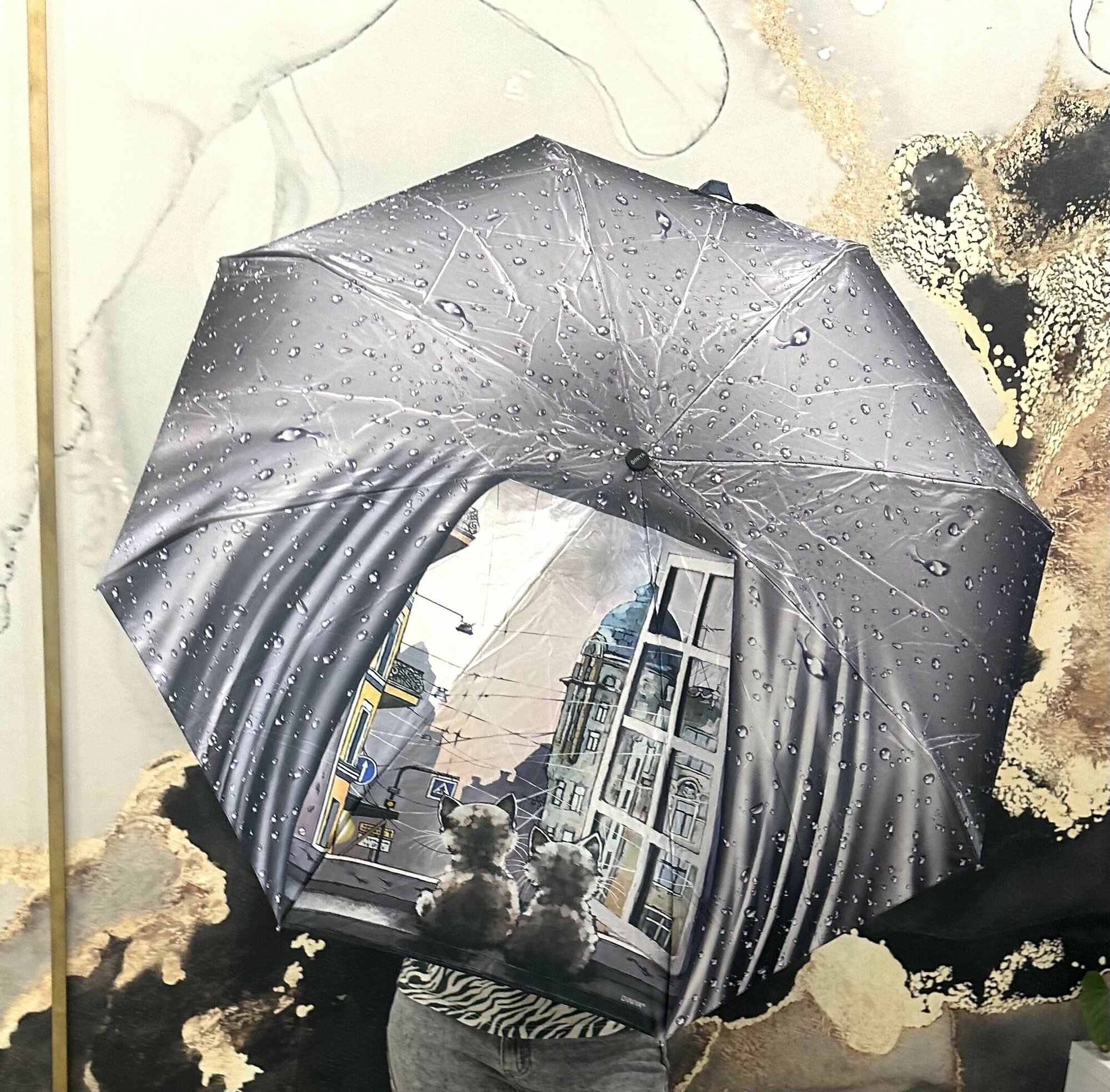 Зонт "Три Слона" женский №310-5, купол D=103 см, 10 спиц, суперавтомат бежево-черный