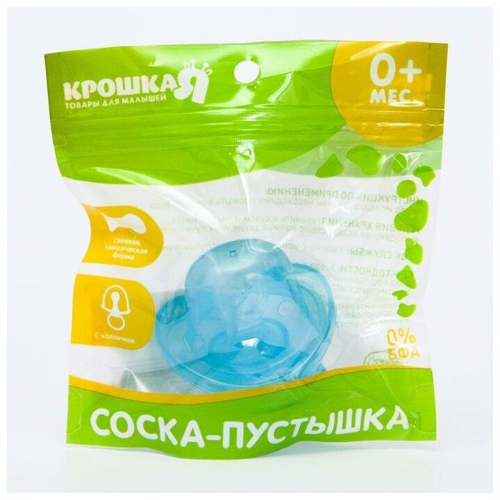 Пустышка прозрачная, классическая с колпачком "Крошка Я", от 0 мес., цвет голубой,