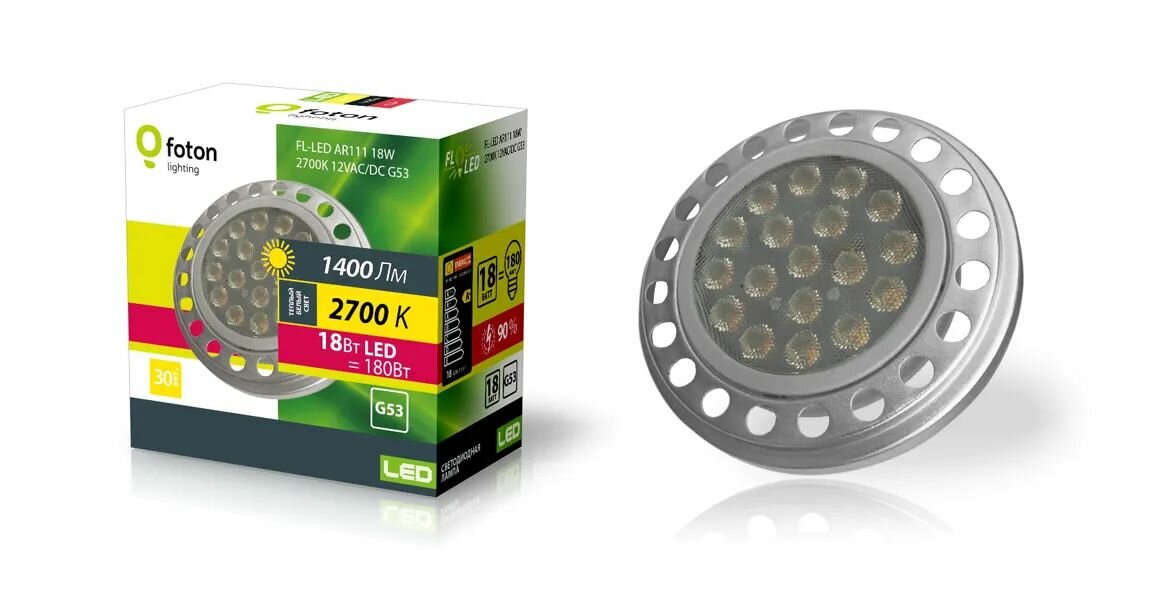 Купить FL-LED AR111 18W 30° 2700K 12VAC/DC G53 d110x55 1400lm - лампа светодиодная FOTON LIGHTIING