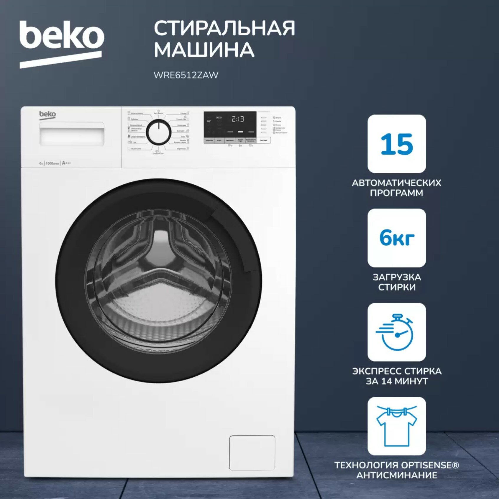 Стиральная машина Beko WRE6512ZAW/белый/6 кг/ 1000 об/мин/ 15 программ