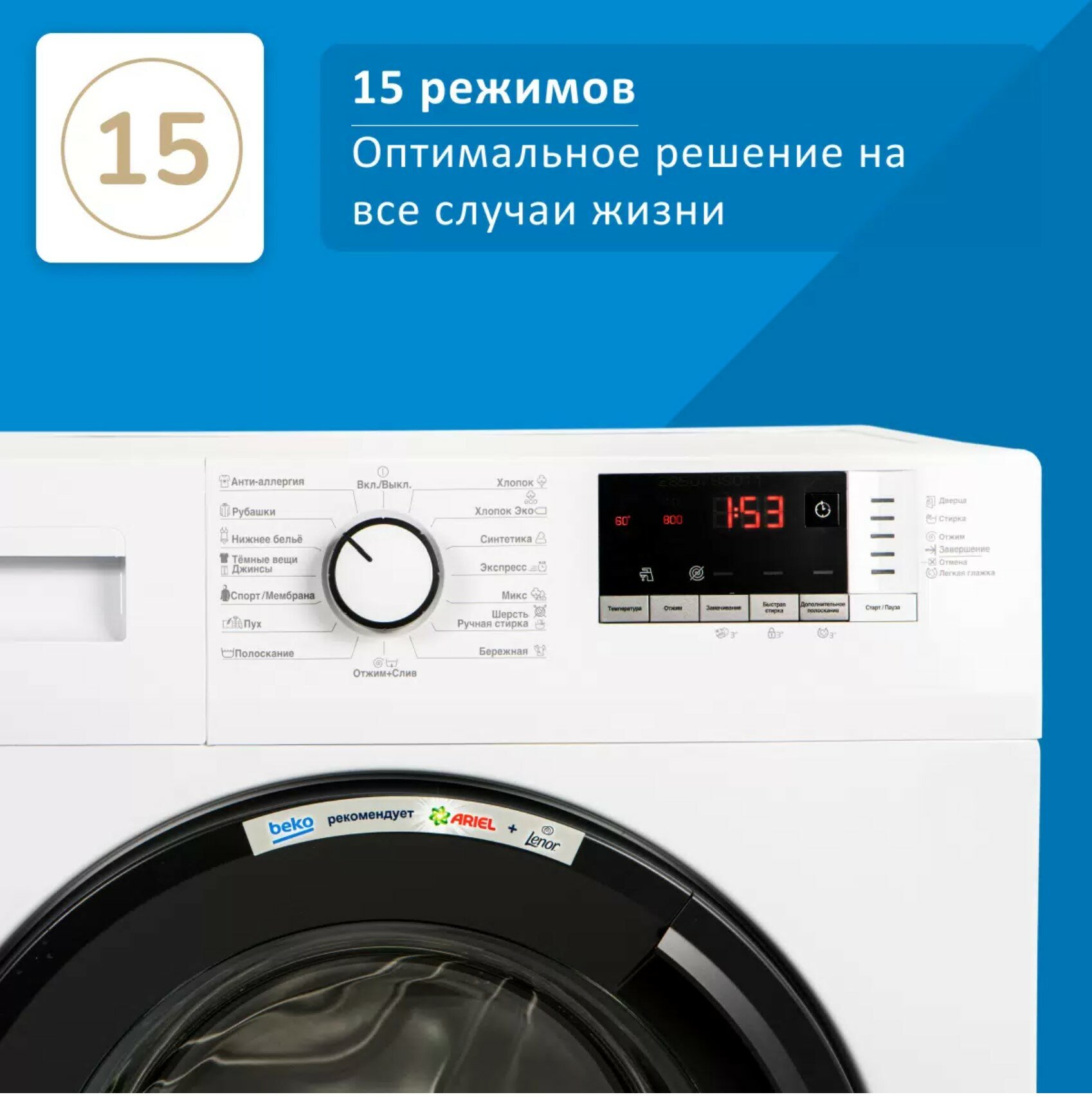 | Количество программ стирки | 15 |