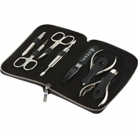 Маникюрный набор DEWAL, 7пр. Футляр: натуральная кожа, цвет черный, 904BLACK