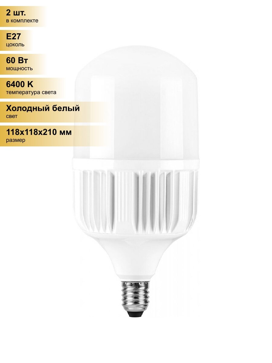 Купить (2 шт.) Светодиодная лампочка Feron лампа св/д высокомощн. E27-E40 60W(5700lm) 6400K 6K 210х118 LB-65 25782 Холодный белый. Цоколь E27