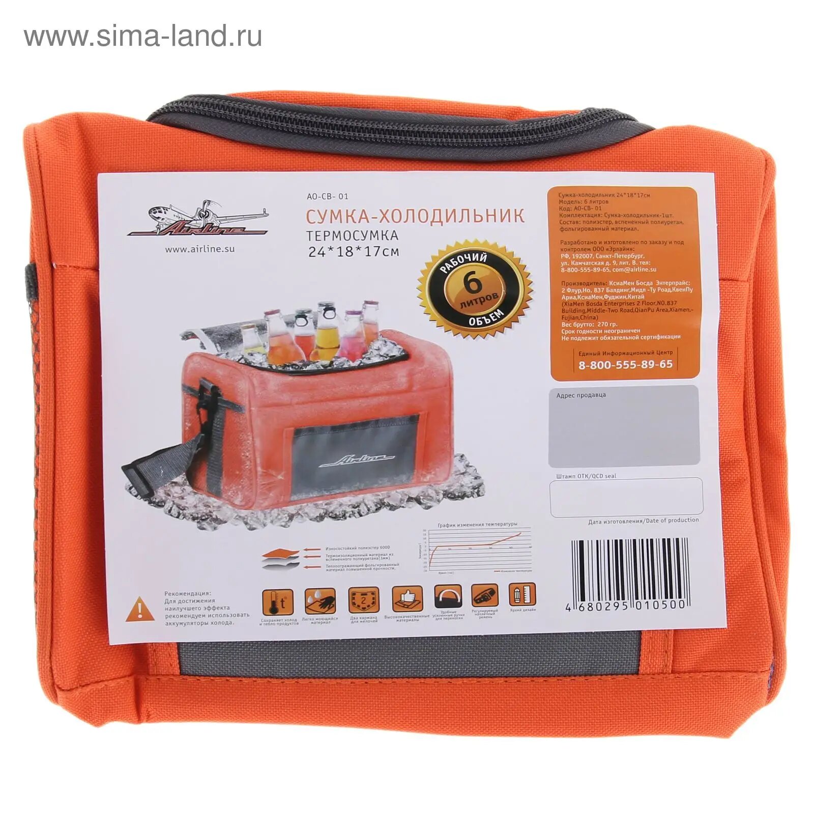 Сумка-холодильник (термосумка) 6 л, 241817 см (AO-CB-01) AIRLINE / арт. AOCB01 - (1 шт)