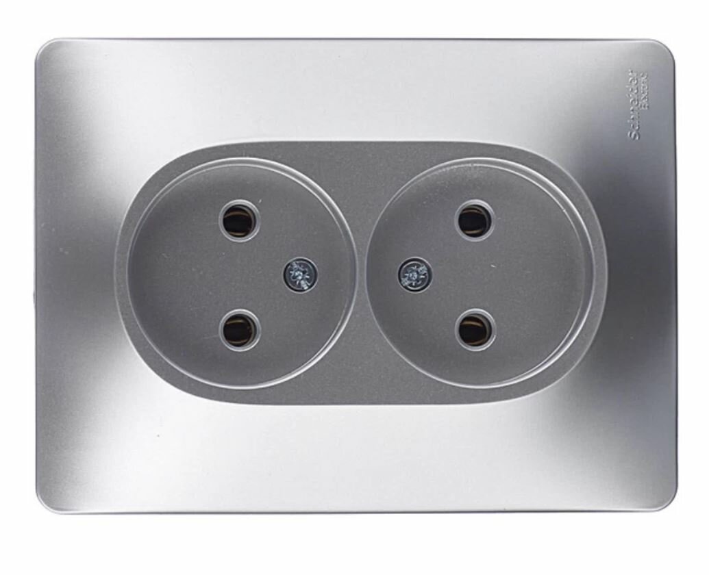 Розетка Schneider Electric Glossa двойная без заземления алюминий