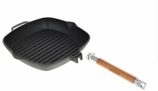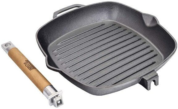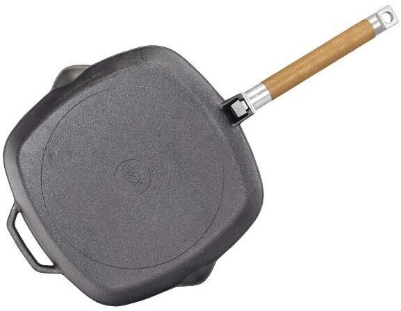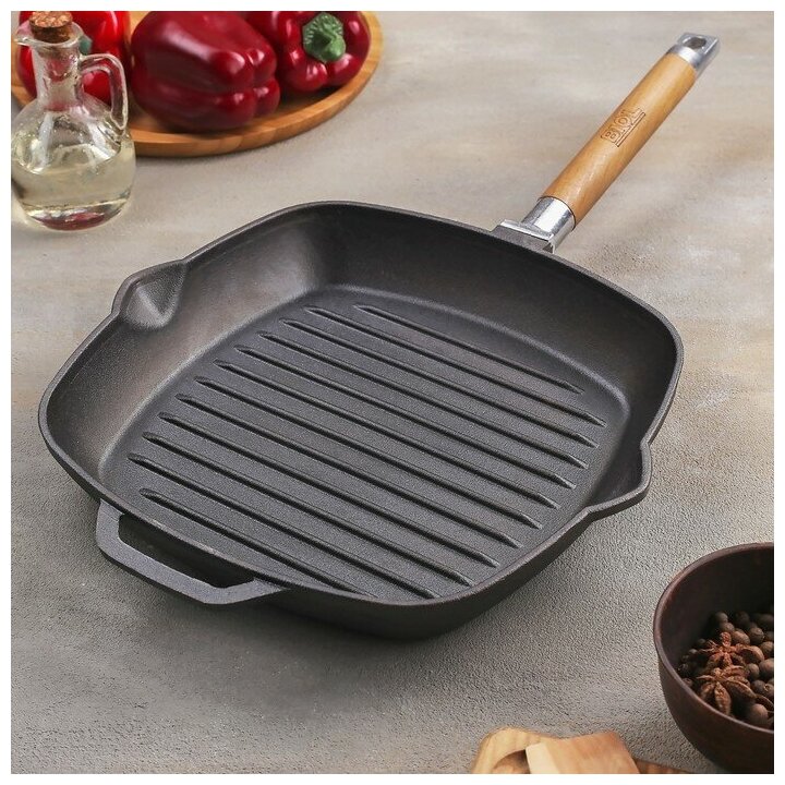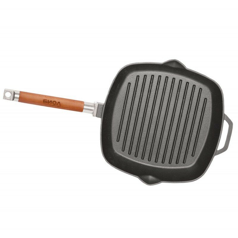 Купить Сковорода-гриль "Биол" чугун, 26 см*26 см квадрат, высота 4,5 см съемная деревянная ручка, Оригинал.