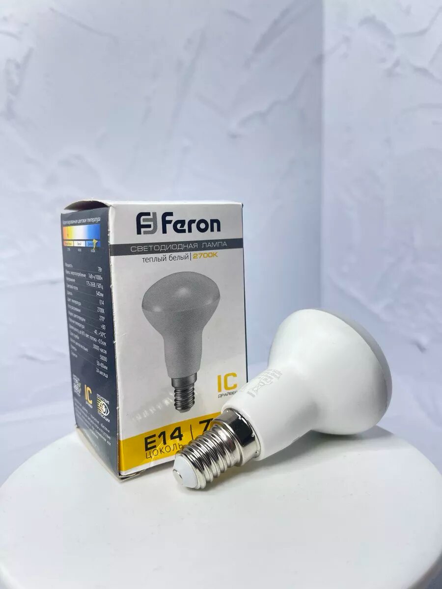 Лампа светодиодная LED зеркальная 7вт Е14 R50 теплый (LB-450) | код 25513 | FERON (7шт. в упак.)