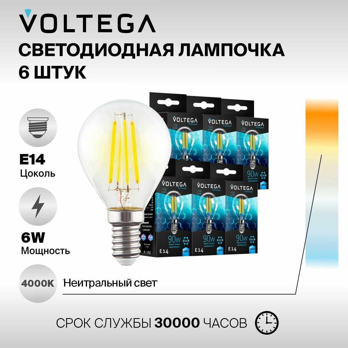 Лампа светодиодная филаментная Voltega E14 4000К 6 Вт 600 Лм 220-240 В шар прозрачная