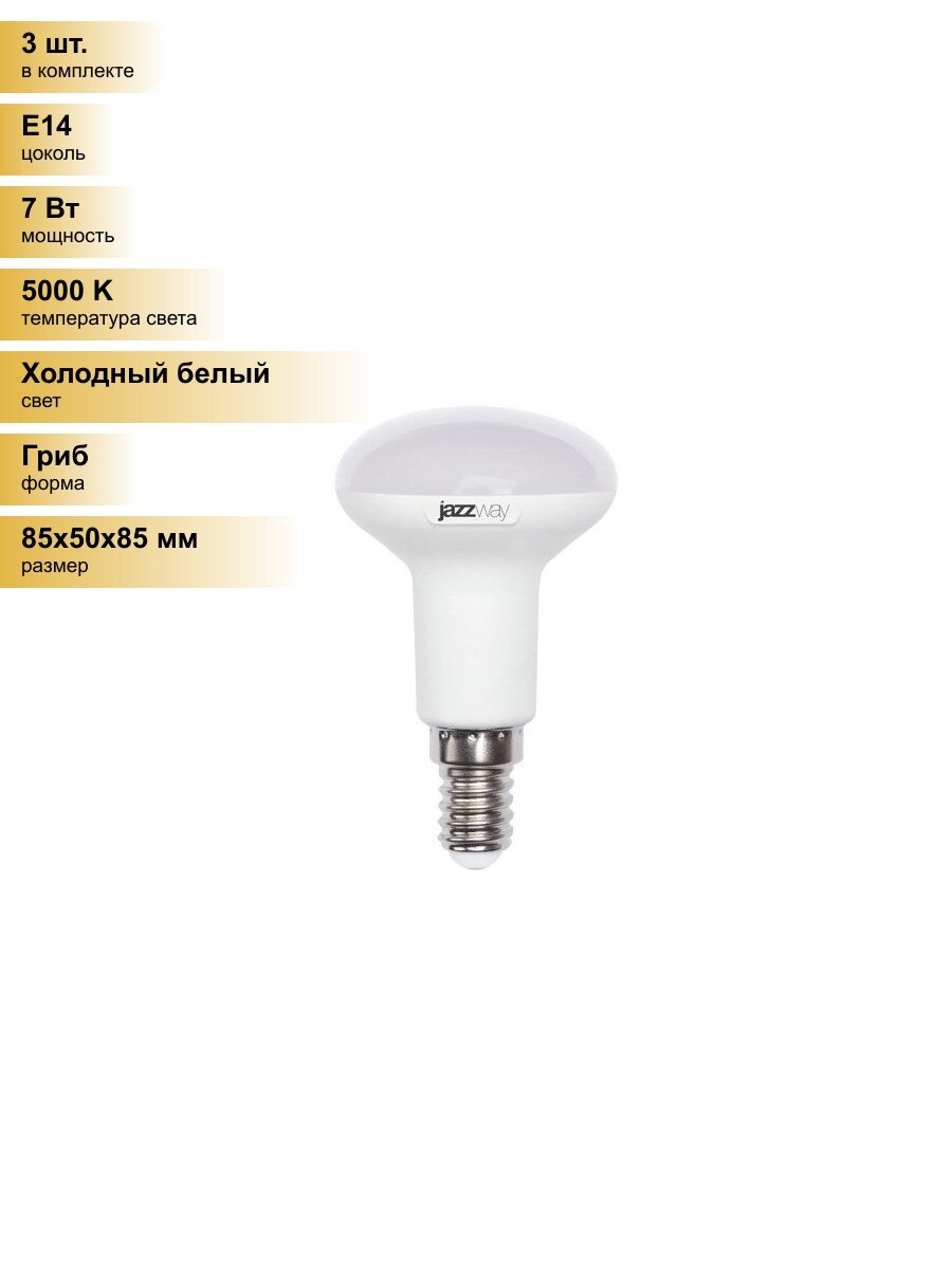 Купить (3 шт.) Светодиодная лампочка Jazzway R50 E14 7W(540lm) 5000K 4K 50x85 матовая PLED-SP .1033635 Холодный белый. Цоколь E14