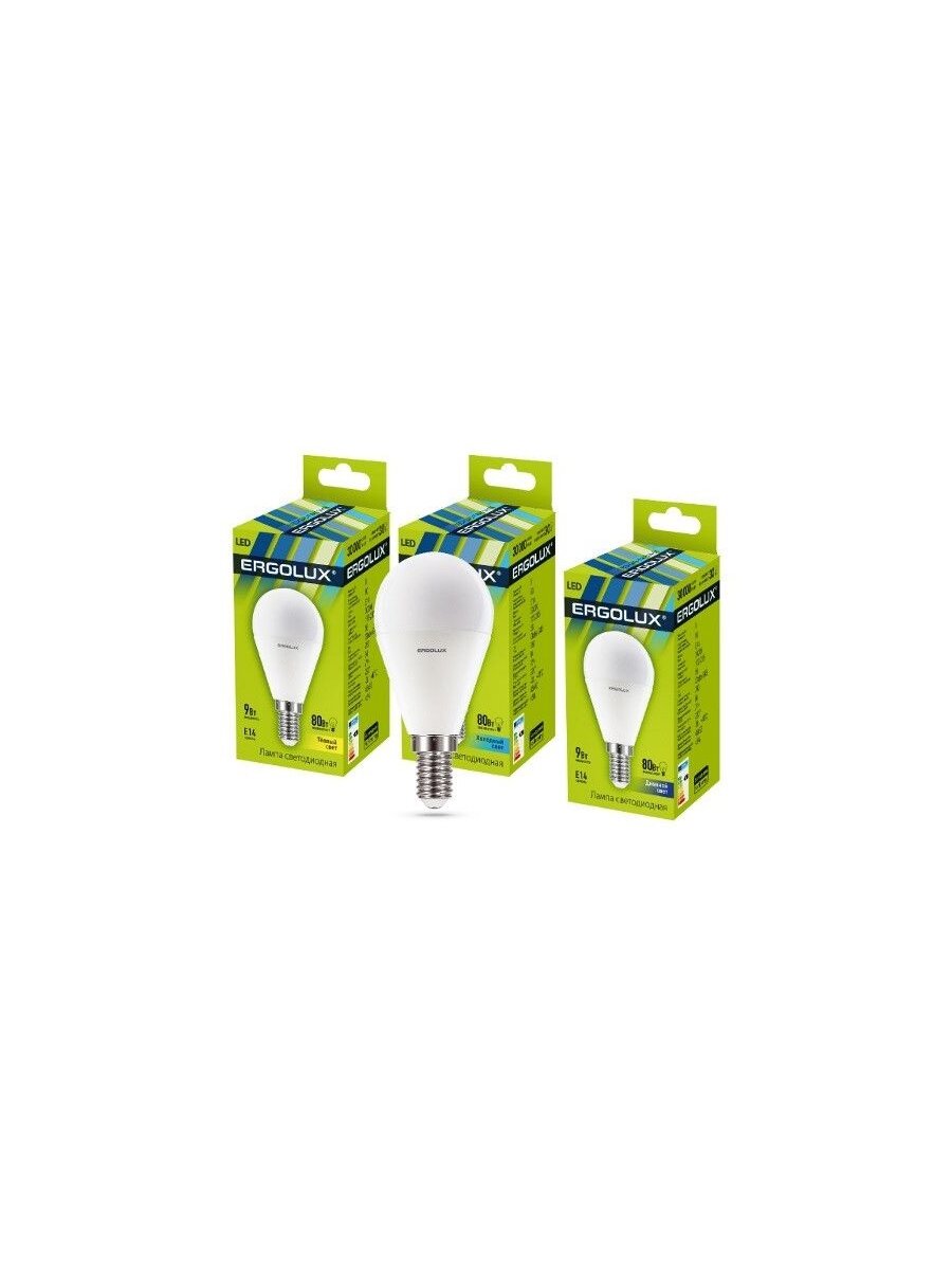 (3 шт.) Светодиодная лампочка Ergolux шар G45 E14 9W(760lm 220°) 3000K 2K матовая 92x45 пластик/алюм. LED-G45-9W-E14-3K Нейтральный белый. Цоколь E14