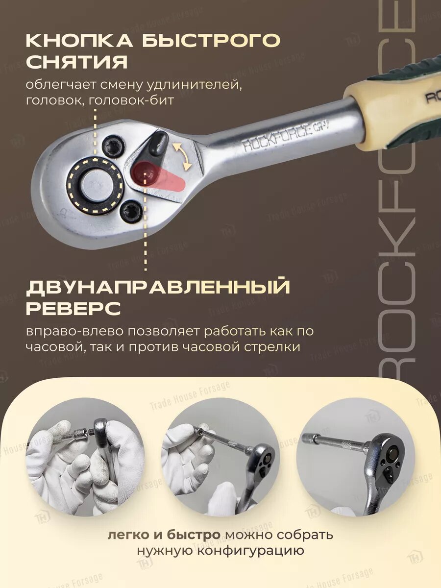 ROCKFORCE Набор инструмента 1/2 & 1/4DR 6-гранный 82 предметов RF-4821-5