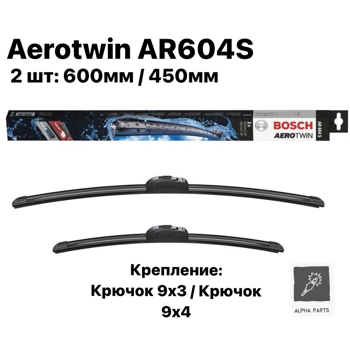 Комплект бескаркасных щёток стеклоочистителя Bosch Aerotwin AR604S 600/450 мм со спойлером, 33971189
