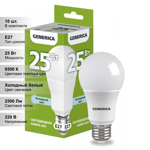 Купить (10 шт.) Светодиодная лампочка GENERICA A65 груша 25Вт 230В 6500К E27