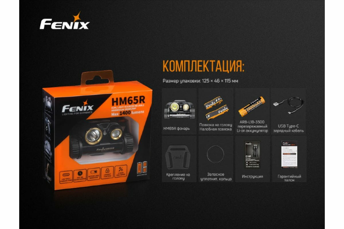 Fenix Фонарь Fenix HM65R (ANSI 1400 лм, 18650/CR123A)