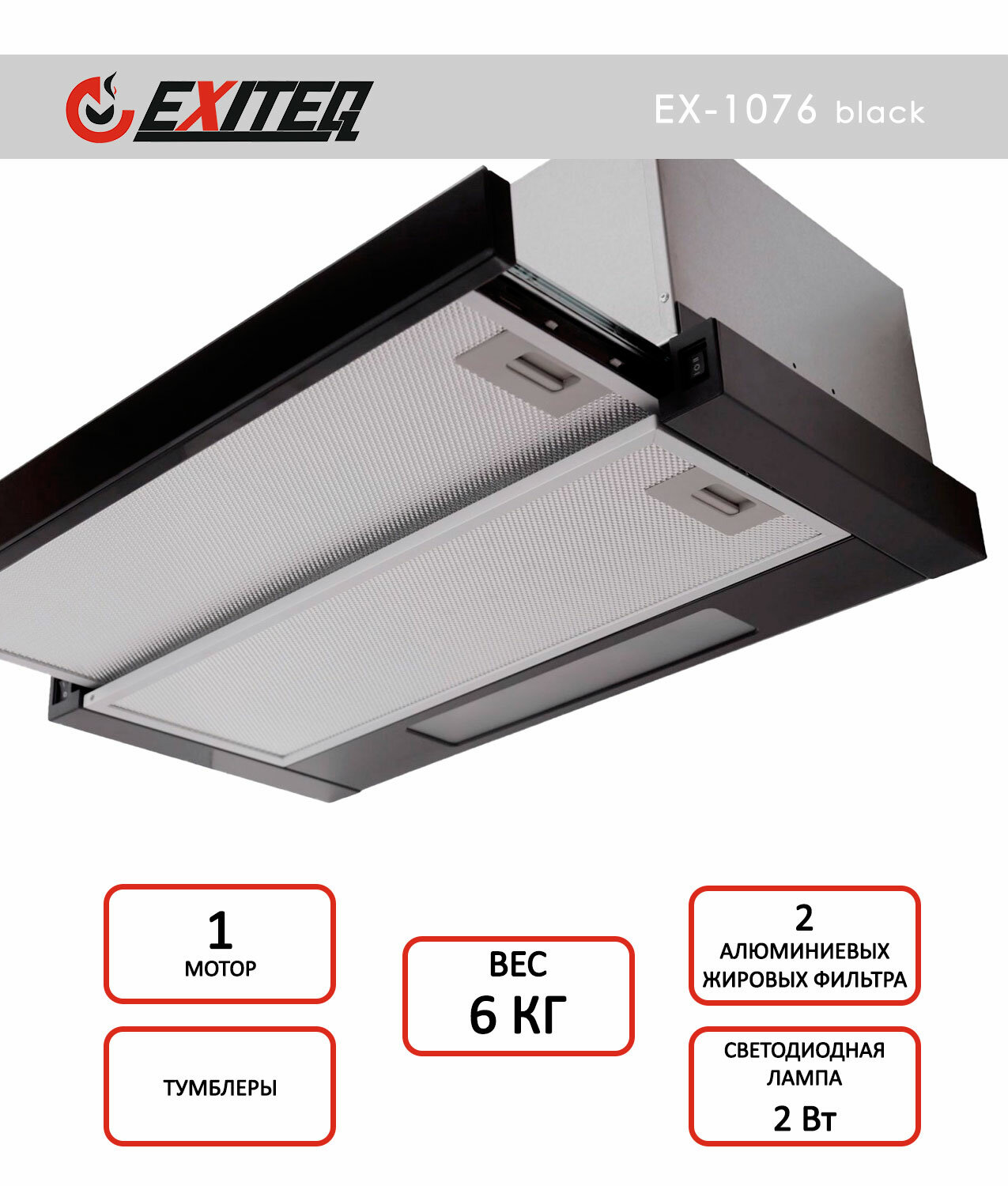 Вытяжка телескопическая EXITEQ EX-1076 black glass, 600 куб. м/час, ширина 59.5 см, черный, Китай интересное: