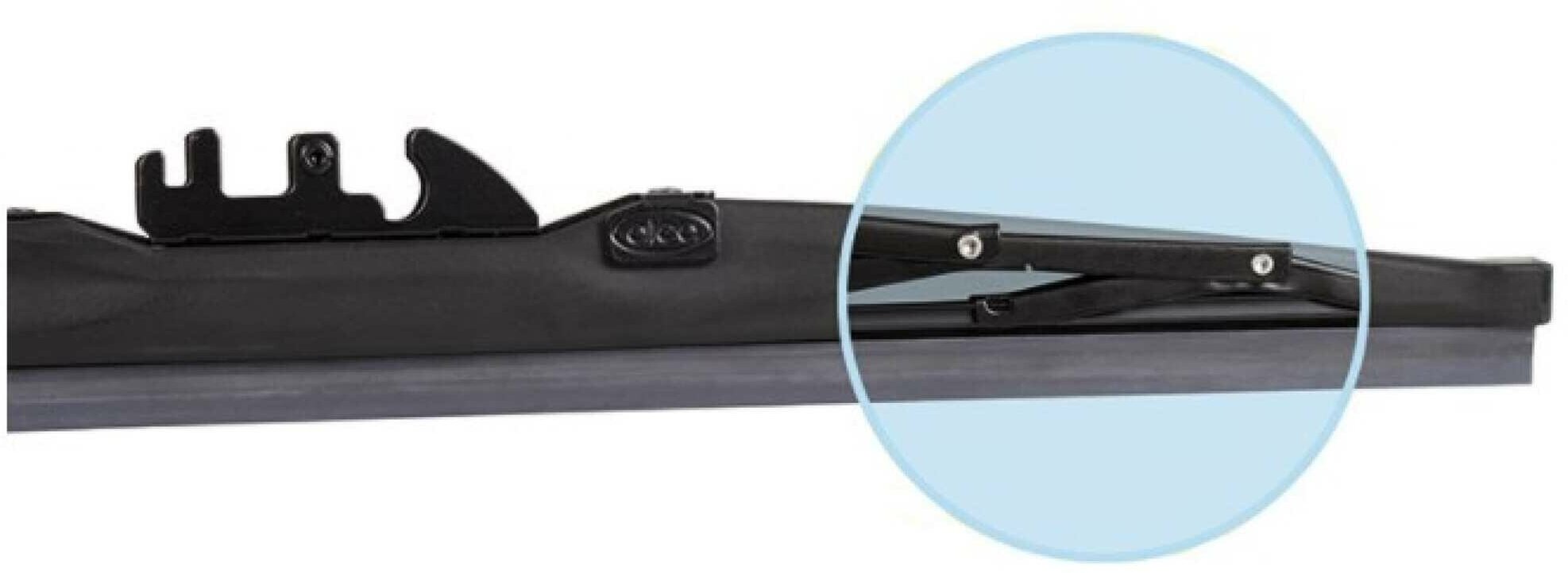 | Плюсы: | Не обледеневают в снежную погоду, резинки не дубеют на морозе. Каркас стеклоочистителя полностью закрыт резиновым чехлом. |