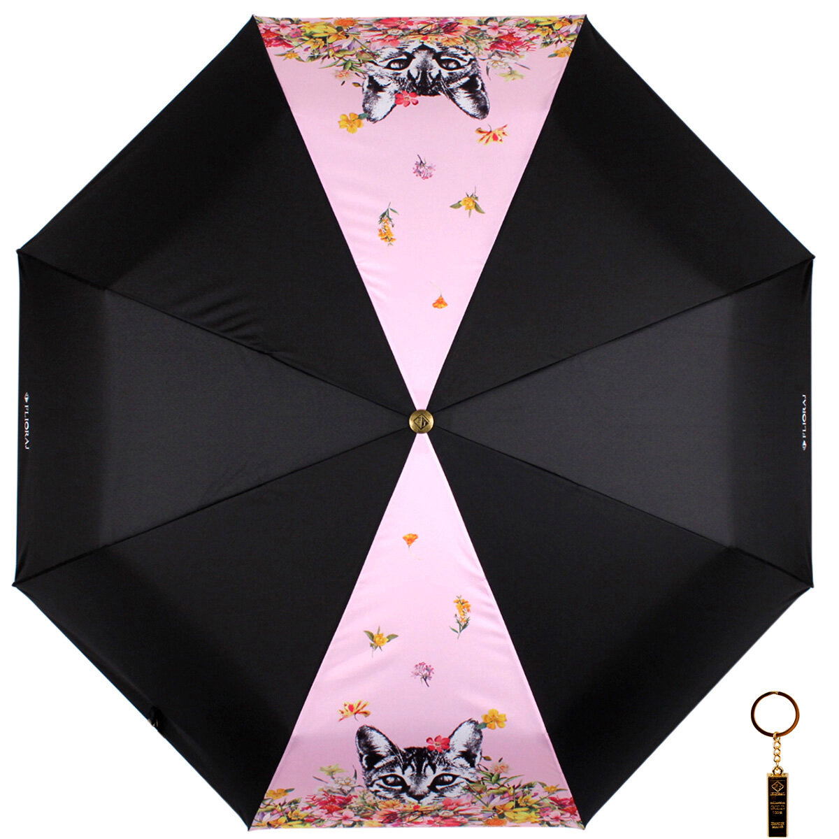 Зонт женский Flioraj Розовый 3 сложения Автомат Антиветер с брелоком 16084 FJ