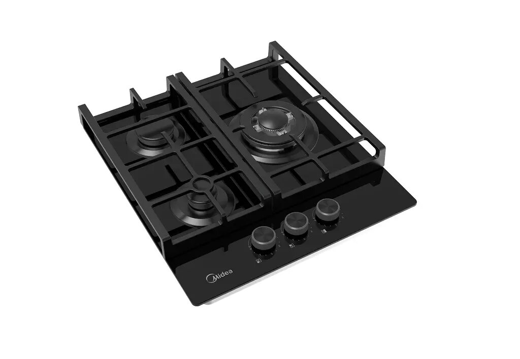 Купить Варочная панель Midea MG449TGB, газовая, чугунные решетки, 3 конфорки, газ контроль, чёрная