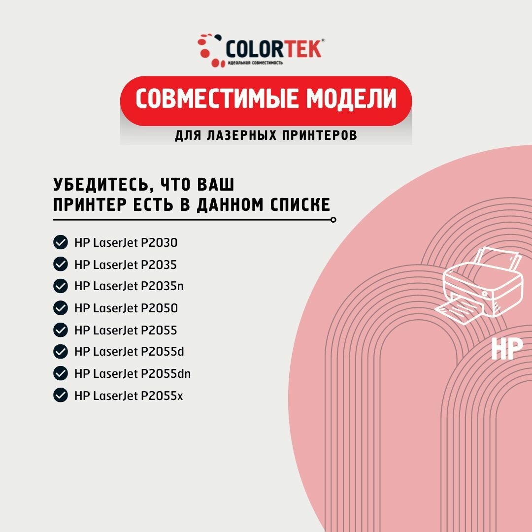 Картридж лазерный Colortek CE505A (05A) для принтеров HP LaserJet P2030, P2035, P2050, P2055 интересное: