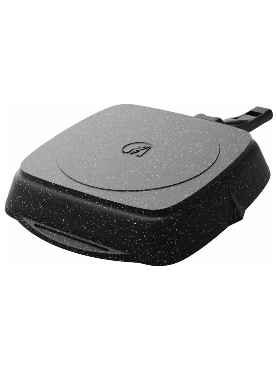 Сковорода гриль Мечта квадратная 28х28 см Гранит с антипригарным покрытием со съемной ручкой и крышкой, НЕ индукционная