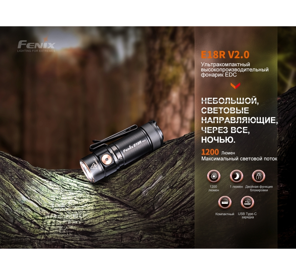 Fenix E18R V2.0 (SST40, ANSI 1200 лм, 16340/CR123A) интересное: