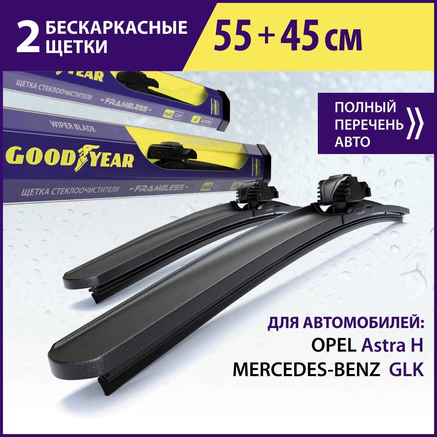 Купить 2 Щетки стеклоочистителя в комплекте (55+45 см), Дворники для автомобиля GOODYEAR для OPEL Astra H (04-14), Chery Tiggo 7 Pro / Чери Тигго 7 Про, Kia Seltos (19-н. в.)