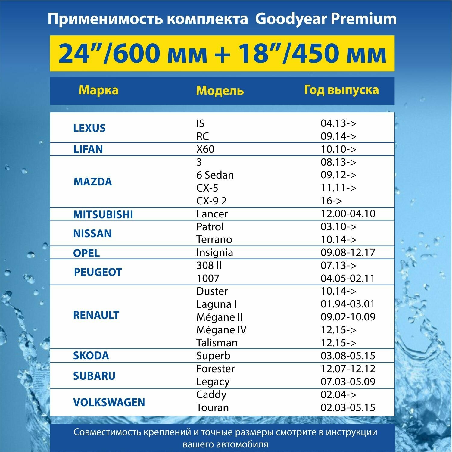 Сохранить2 Щетки стеклоочистителя в комплекте (60+45 см), Дворники для автомобиля GOODYEAR для RENAULT Duster/Arkana/Megane 2, LADA Vesta, MAZDA6(12-) интересное: