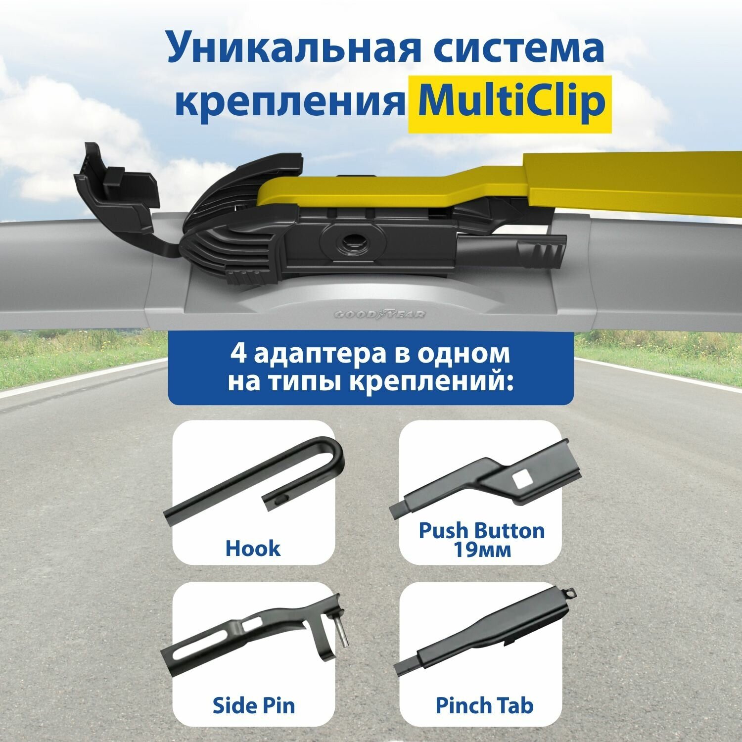 Щетка стеклоочистителя Goodyear Multi Clip Premium 530мм бескаркасная 8 переходников