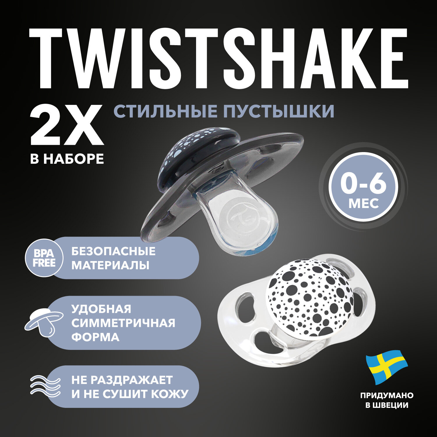 Пустышка Twistshake с 0 до 6месяцев 2шт Чёрная-Белая