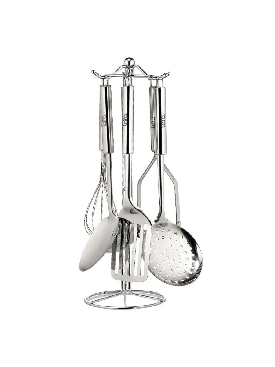 LR07-31 LARA Набор кухонных принадлежностей, 7 предметов, металлический стенд, сталь, полировка