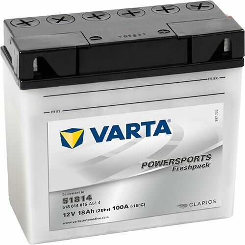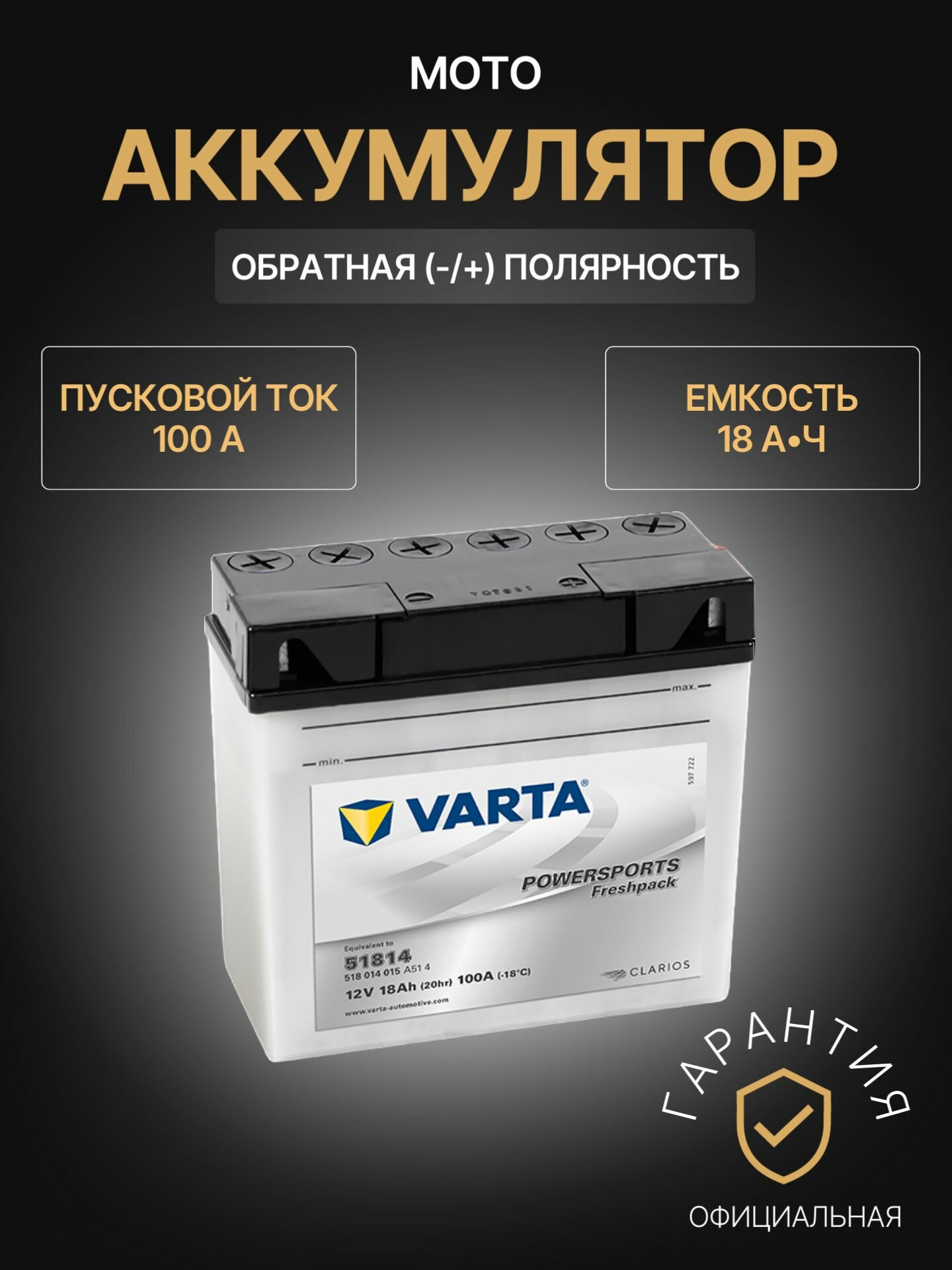 СохранитьАккумулятор для мототехники Varta PowerSports FreshPack 518 014 015 A514 12В 18Ач 100А, Обратная полярность интересное: