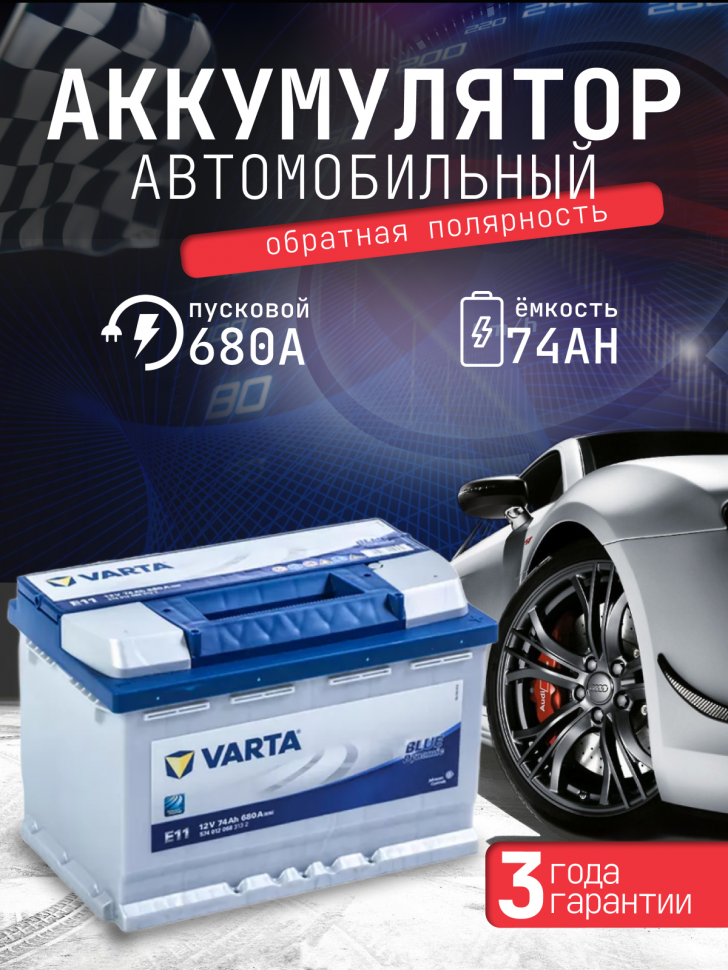 Аккумулятор Varta Blue Dynamic E11 74 Ач 680А обр. пол.