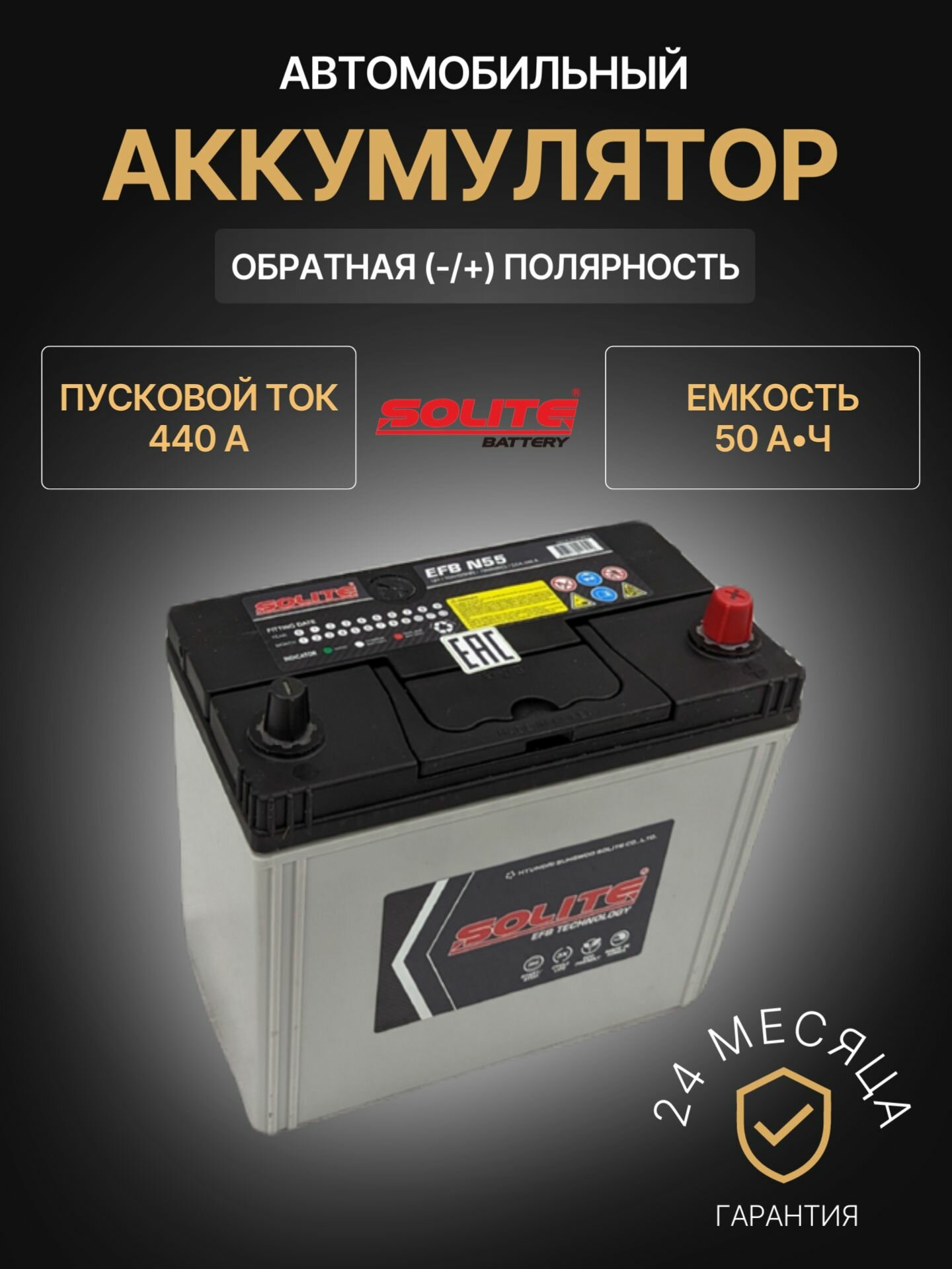 Купить Аккумулятор автомобильный Solite EFB N55 12В 50Ач 440А