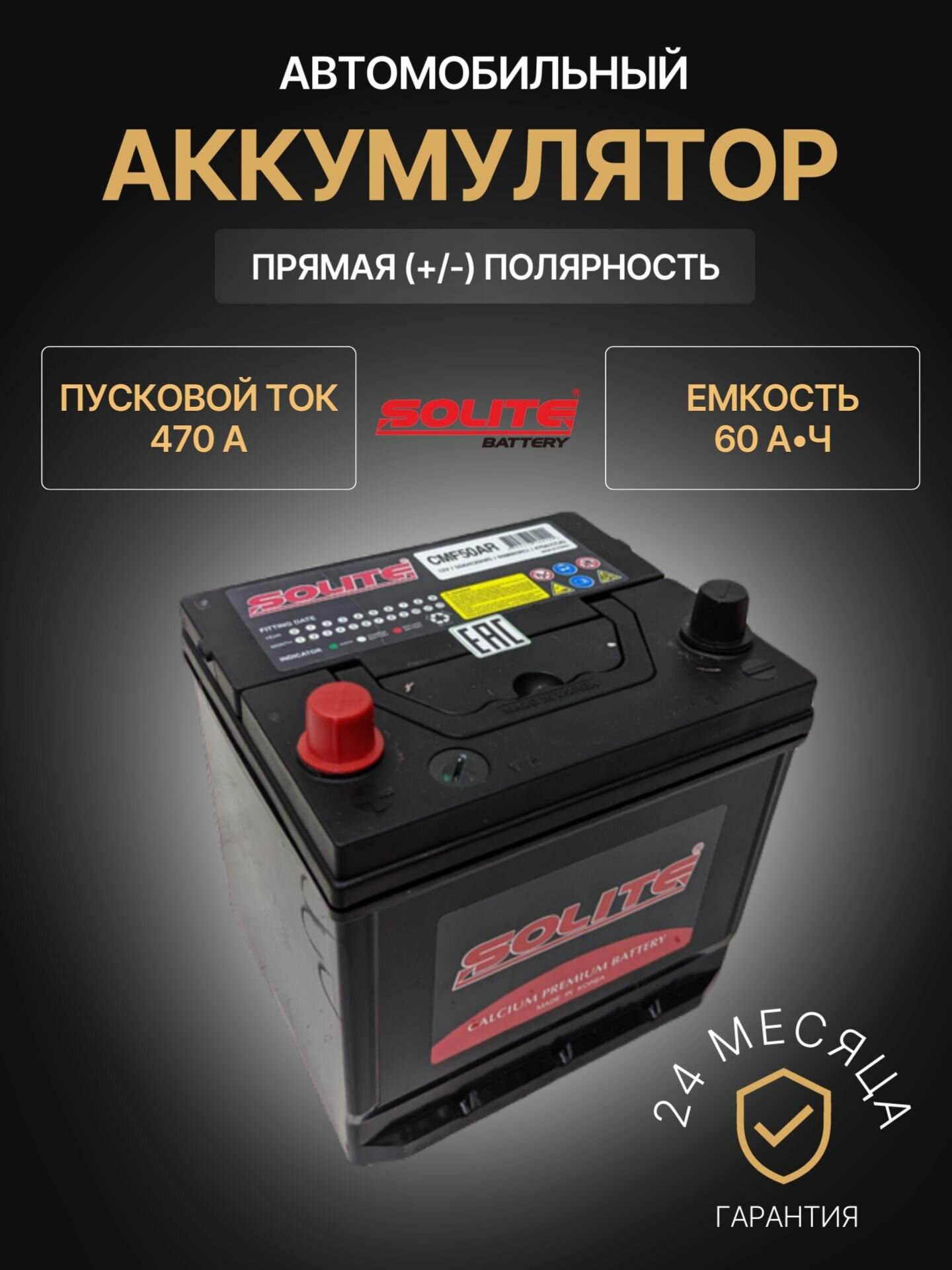 АКБ SOLITE CMF 26R-550 60 А/часа, Обратной полярности, 206х172х204мм