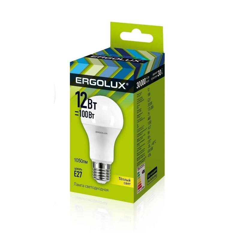 Светодиодная лампа Ergolux LED-A60-12W-E27-3K