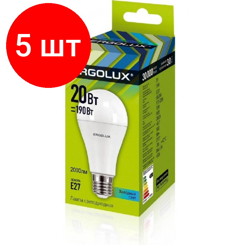 Купить Комплект 5 штук, Лампа светодиодная Ergolux LED-A65-20W-E27-4K, ЛОН