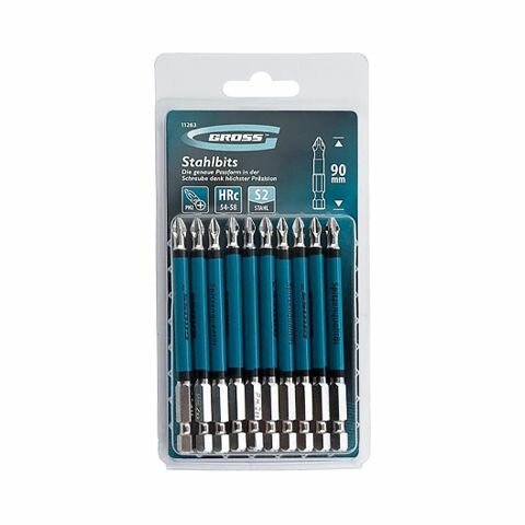 Набор бит GROSS, PH2 х 90 мм, сталь S2, 10 шт../В упаковке шт: 1