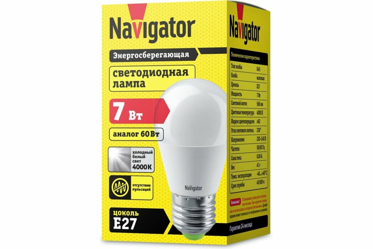 Светодиодная лампа Navigator NLL-G45-7-230-4K-E27