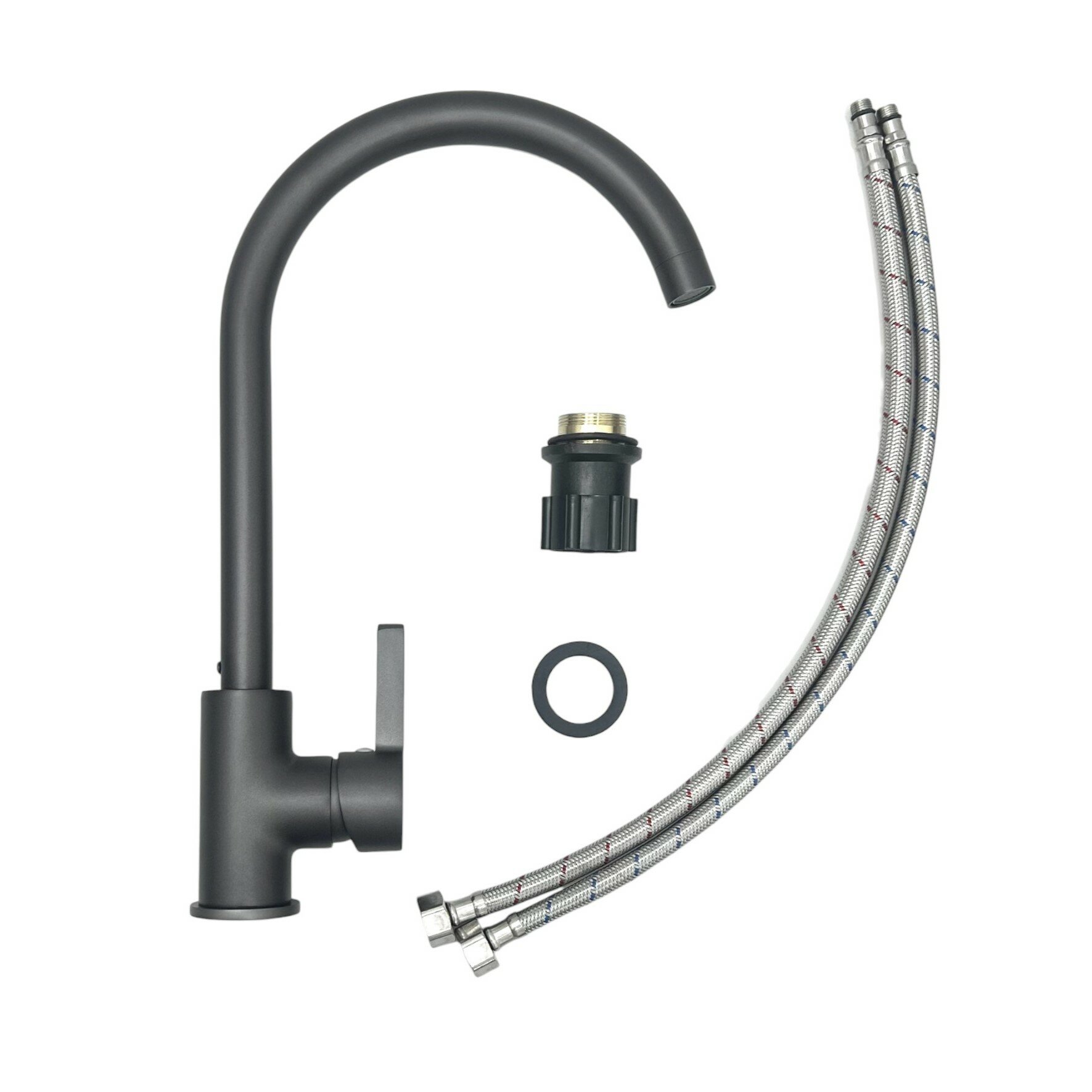 Купить Смеситель для кухни Ledeme RL4299U графит, однорычажный, высокий поворотный излив