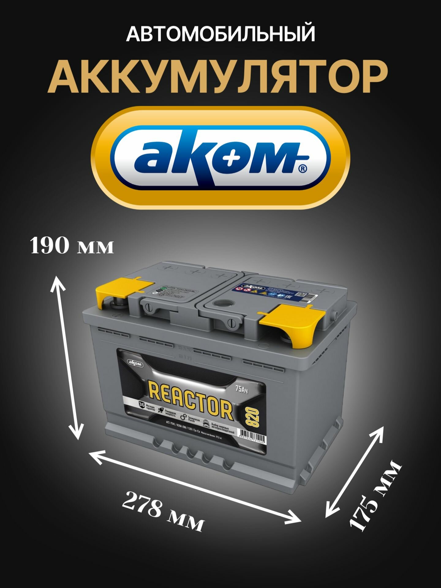 Акб 6ст-75 75ah 750a [+-] Прямая 278x175x190 19.6кг Аком Reactor АКОМ арт. 4607034730116
