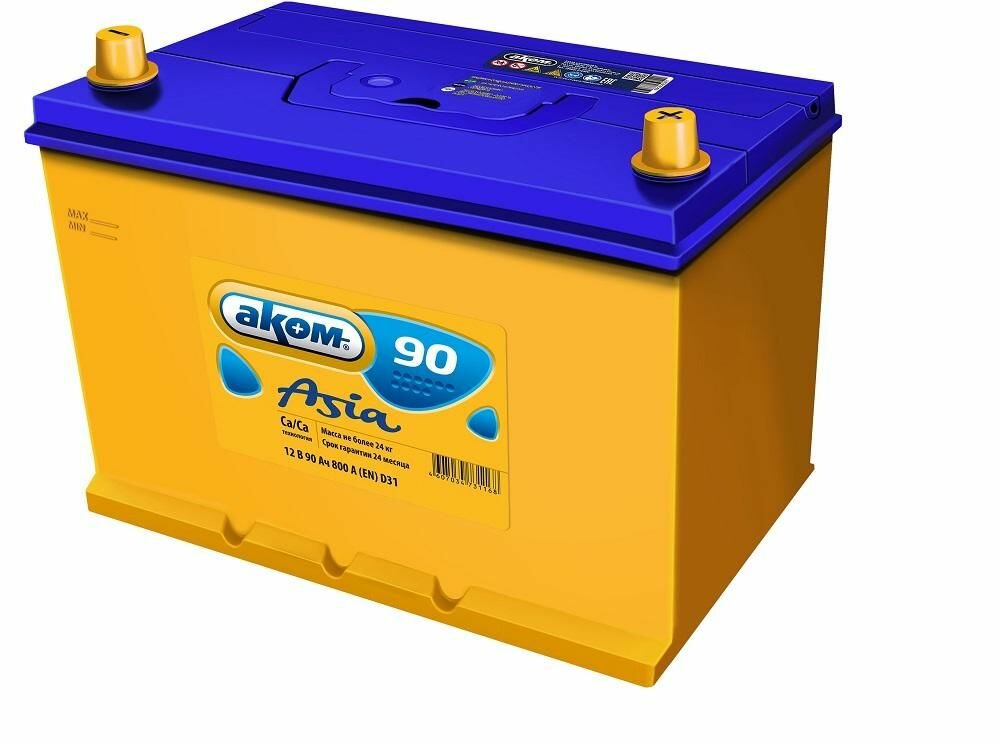 Купить Аккумулятор автомобильный АКОМ Asia 90 R+ 12В 90Ач 800А