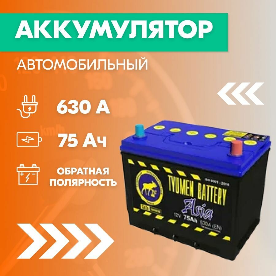 Купить Аккумулятор автомобильный тюмень Asia 75 Ач, пуск. ток 630 А, обратная полярность, 260x175x225 26L
