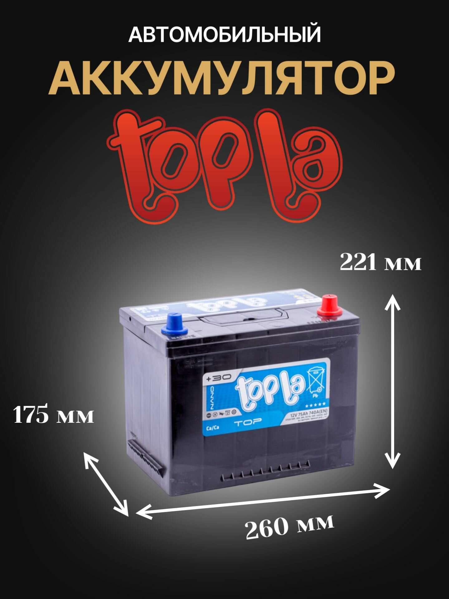 TOPLA 118875 Аккумулятор 75 Обратная [- +] TOPLA Asia 740A 269/173/218 Толстые