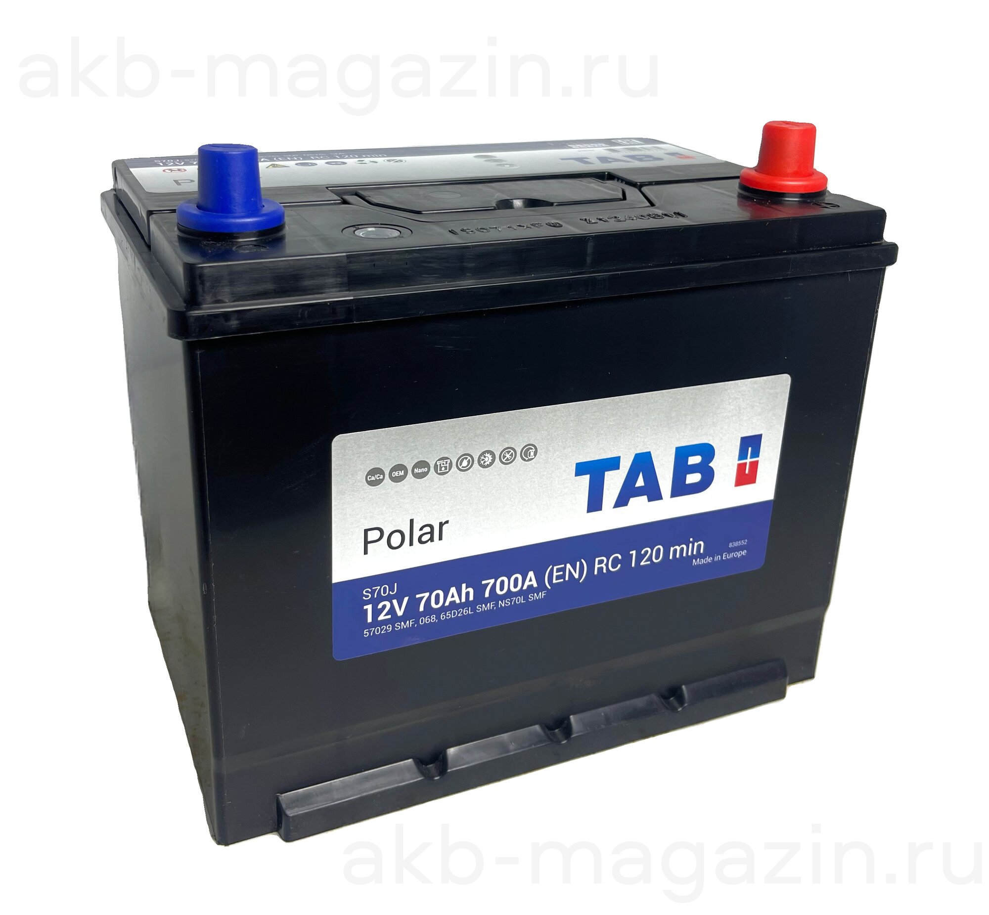 Аккумуляторная батарея TAB Polar 6СТ-70.0 (57029) (обратная полярность, азиатский типоразмер, бортик)