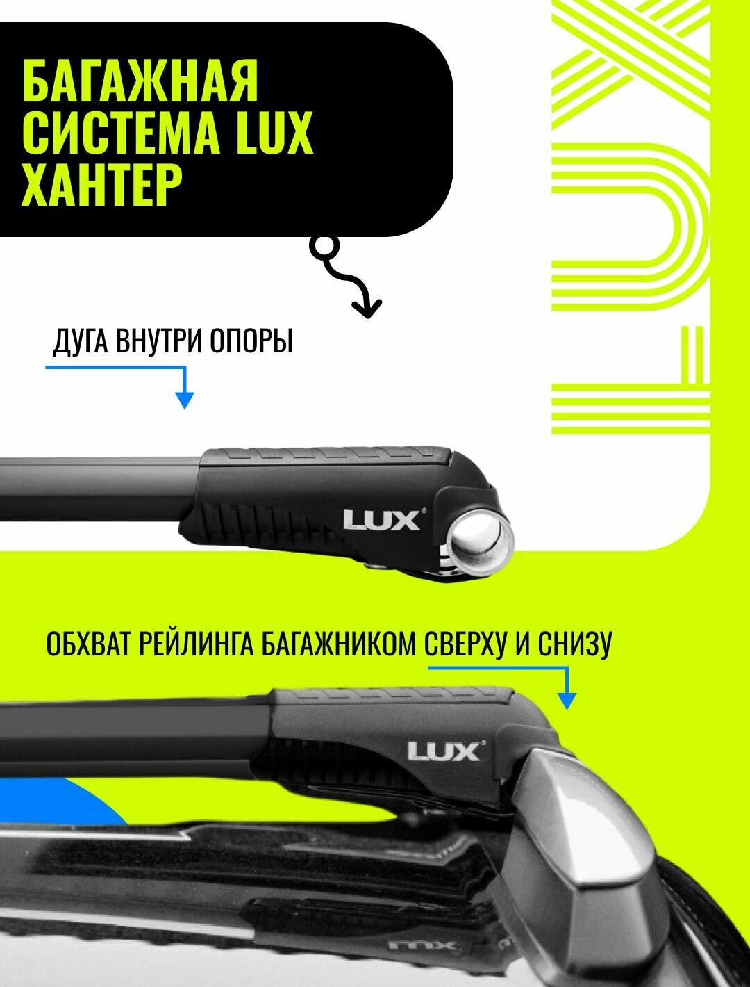 Багажная система LUX хантер L43-B 791859 черная дуга для автомобилей с рейлингами